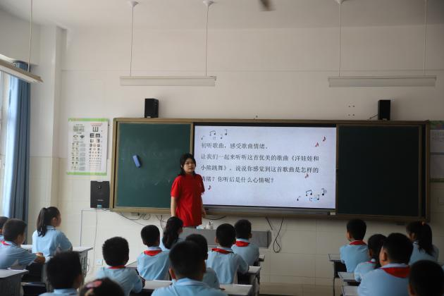 “艺术润童心,阳光下成长”。音乐学院“红色梦想”服务队队员结合自身的专业特长,开展声乐、器乐、舞蹈等实践课堂内容,以“美育”为核心,融入“德育”,在学习音乐、舞蹈技能的基础上,促进孩子们表达真实的感受和需求,感受艺术的纯真之美。
