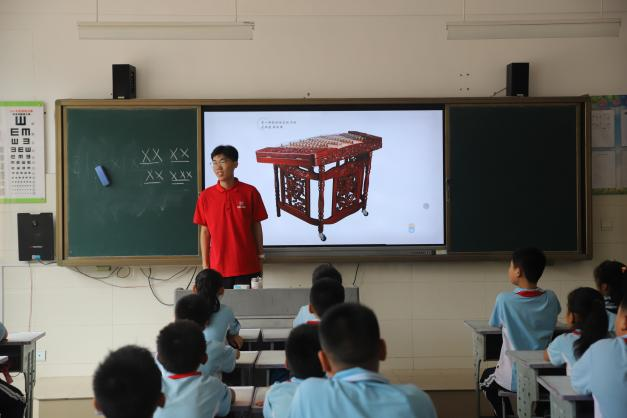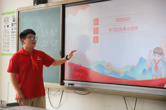 听红色故事,忆辉煌党史。音乐学院“红色梦想”服务队队员以“党在我心中,薪火永流传”为主题,为孩子们讲解党的历史,内容包括什么是中国共产党、学习红色革命精神、增强国家安全意识以及新时代中国青年该有的样子。引导孩子们学习自立自强、不畏艰险、勇于拼搏、团结协作的精神,珍惜当今来之不易的幸福生活,努力学习,报效祖国。