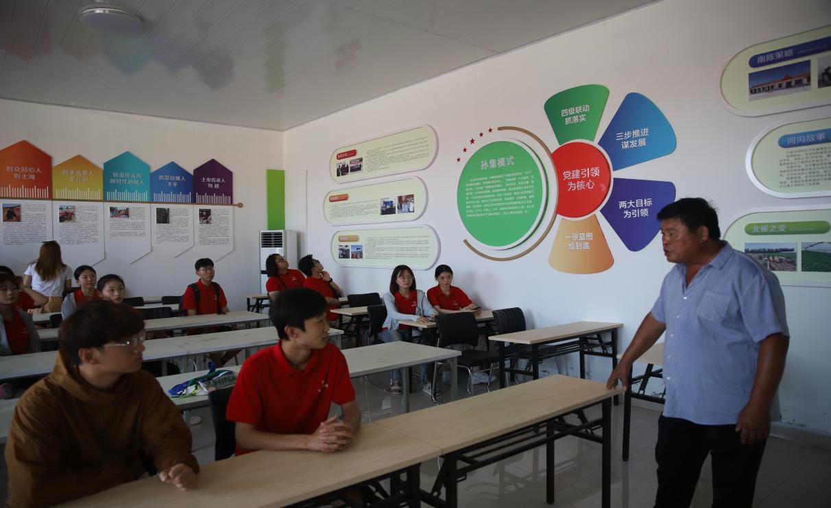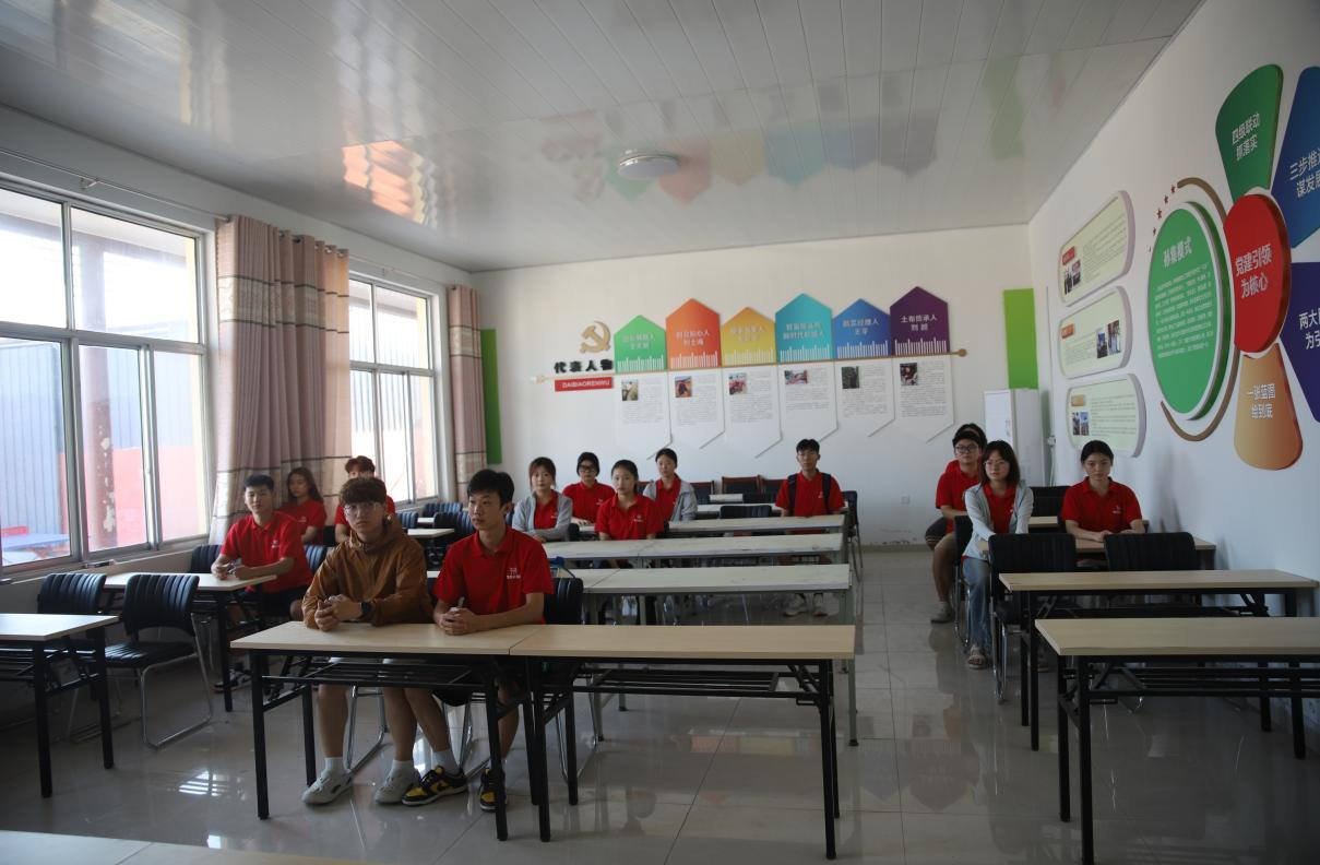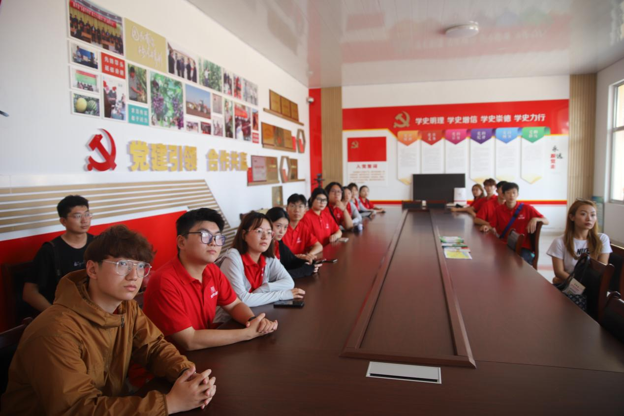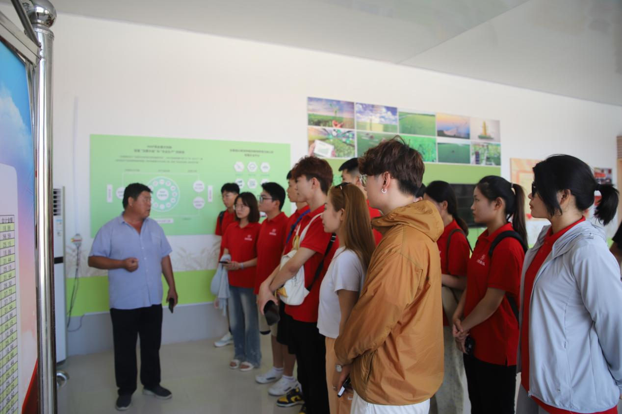 商河县孙集镇前街新村书记王太明为队员们详细介绍了该村乡村振兴东风下的发展进程以及商河县孙集镇前街新村众鑫土地股份农民专业合作社服务基地项目的实施目的、项目计划和取得成效等情况。实践队在参观调研乡村建设、乡村成就、今夕变化以及看到如今的新农村旧貌换新颜后,深刻体悟到了党建引领的意义,更加坚定了跟党奋进新征程的信心决心。