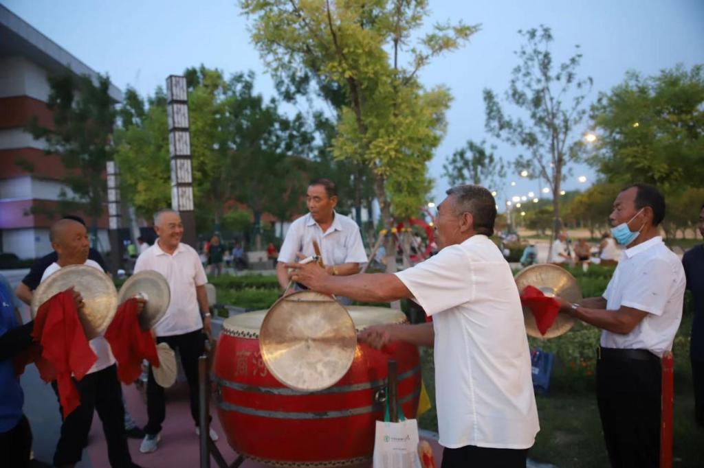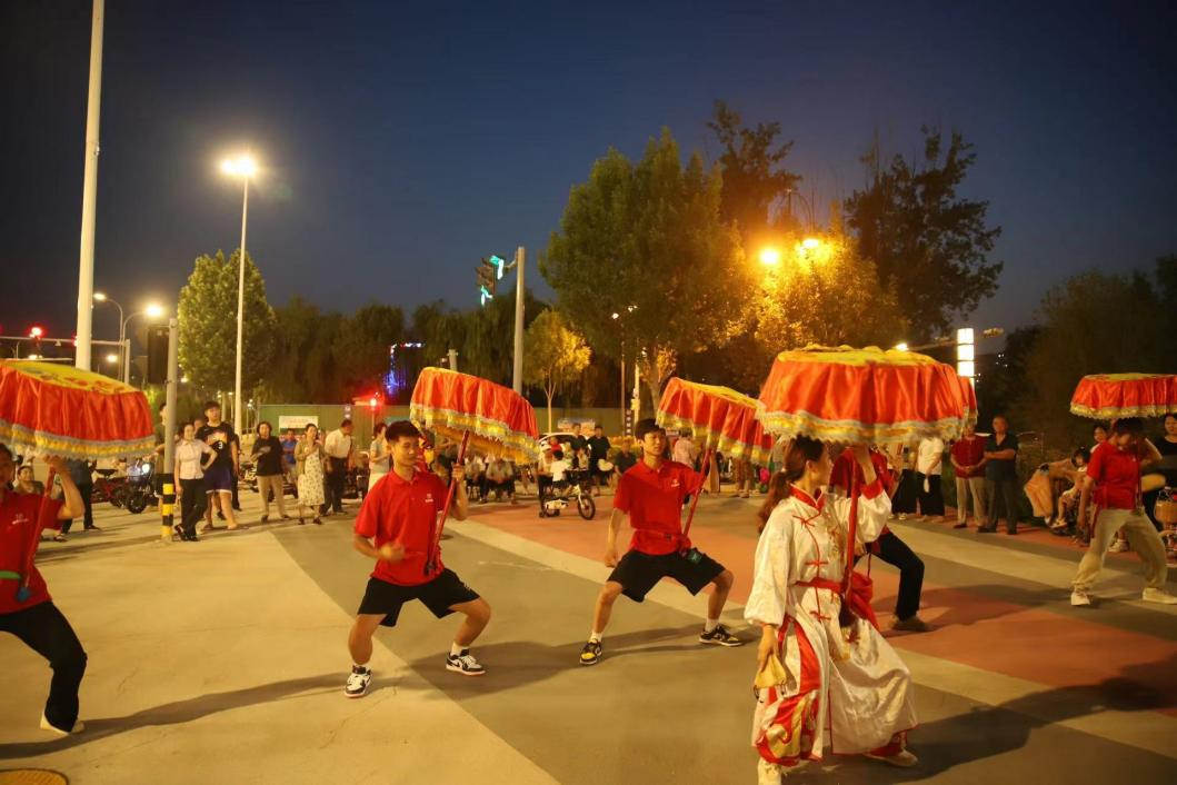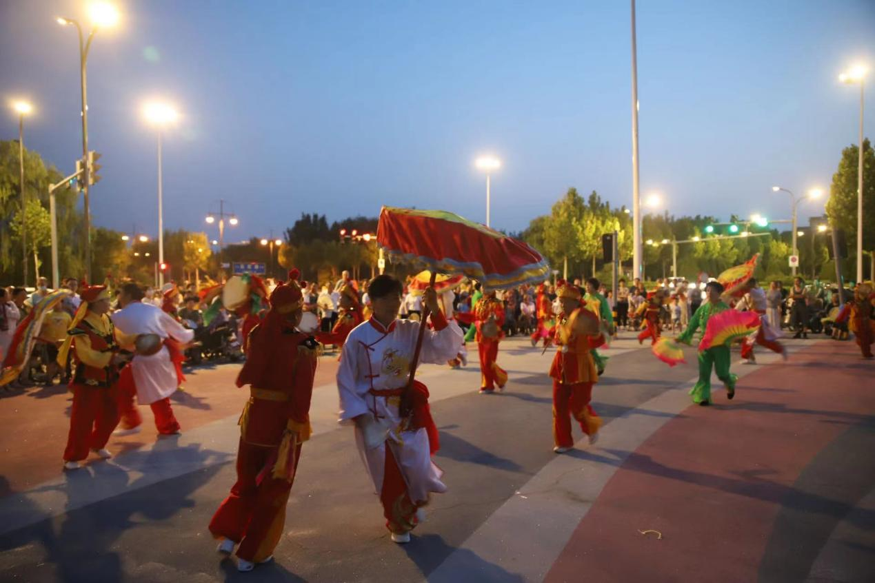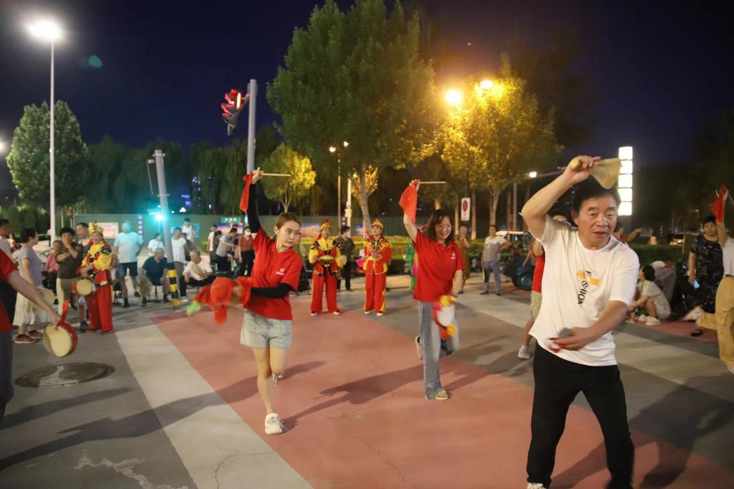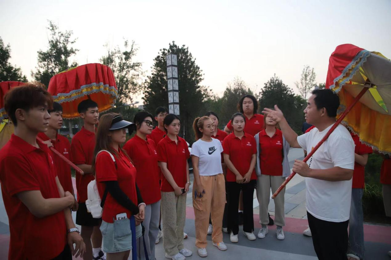 为大力弘扬民族优秀传统文化,进一步加强对非物质文化遗产的实践调研,7月25日晚,音乐学院“红色梦想”社会实践服务队在尹亚男的带领下,来到商河县市民服务中心,观摩商河鼓子秧歌的训练彩排。
