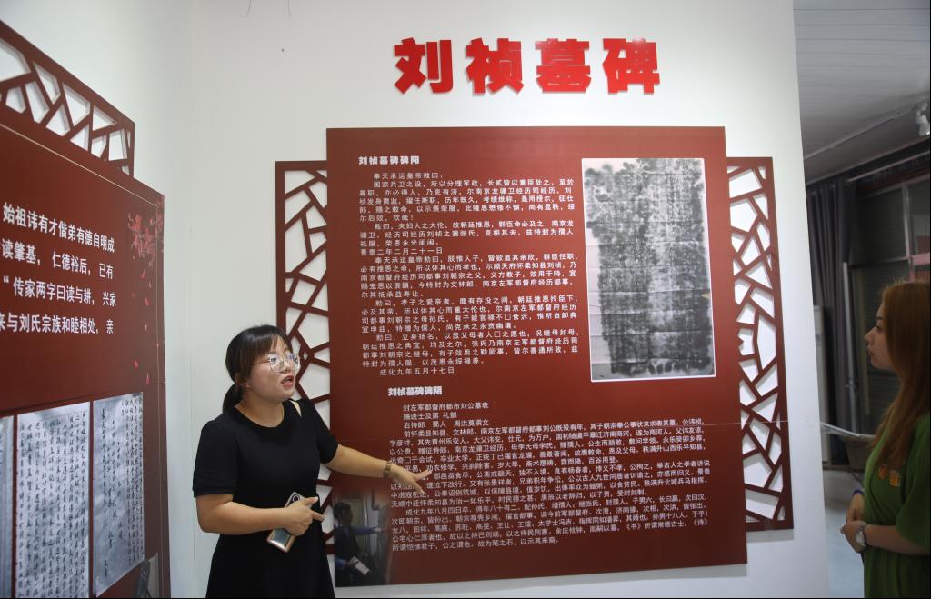 在南大刘村乡村振兴记忆村史馆,服务队队员们了解了该村的历史沿革以及600年来的历史文化、家风家训以及近年来村庄建设取得的发展变化,村英雄保家护院、奋起反抗、英勇抗敌的故事,见证了新农村建设取得的巨大成就,并参观了刘祯墓碑。