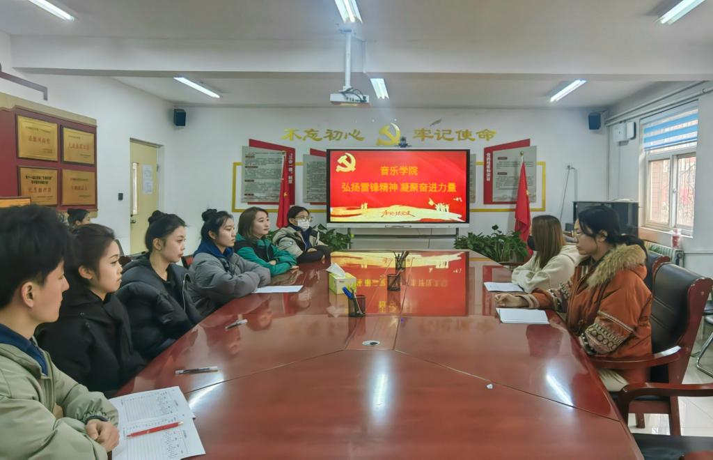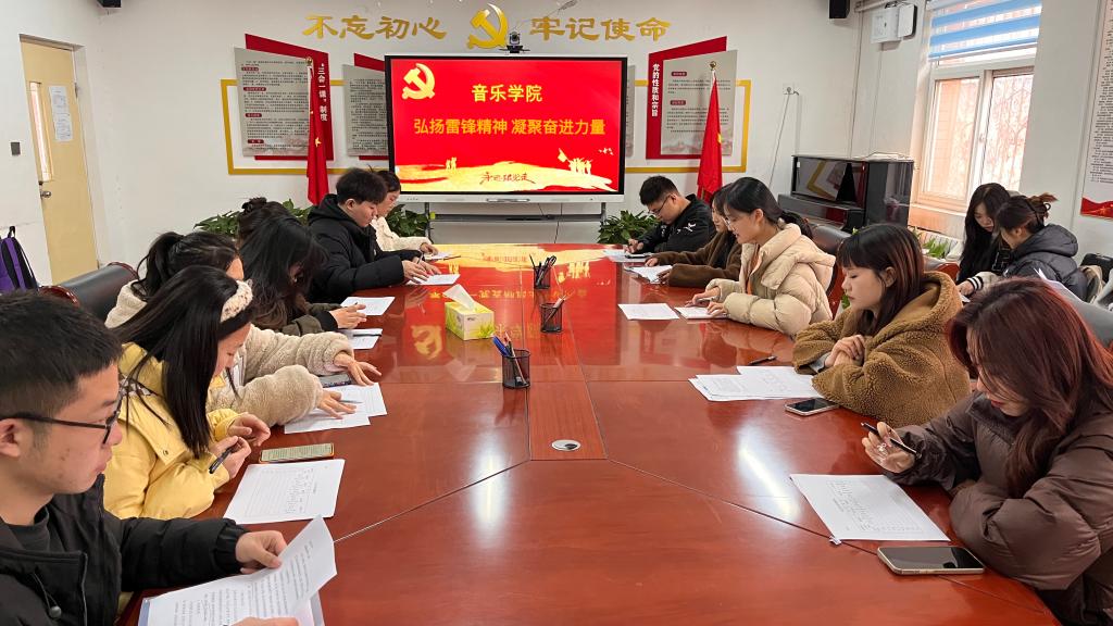 为贯彻落实习近平总书记对深入开展学雷锋活动作出的重要指示精神,引领青年学子从雷锋精神中汲取奋进力量,2024年3月11日,音乐学院学生第一党支部和第二党支部党员联合开展“弘扬雷锋精神 凝聚奋进力量”主题团课活动。此次活动由学生第一党支部书记刘秋雨、学生第二党支部书记尹亚男主讲,各支部学生党员、团支书、入党积极分子参加此次活动。