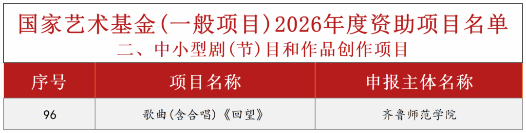 国家艺术基金(一般项目)2026年度资助项目名单日前公示,经国家艺术基金专家严格评审,报国家艺术基金理事会批准,音乐学院小型剧(节)目和作品创作项目《回望》成功入选,这标志着我院在艺术创作与学术研究领域取得国家级立项的突破性进展。