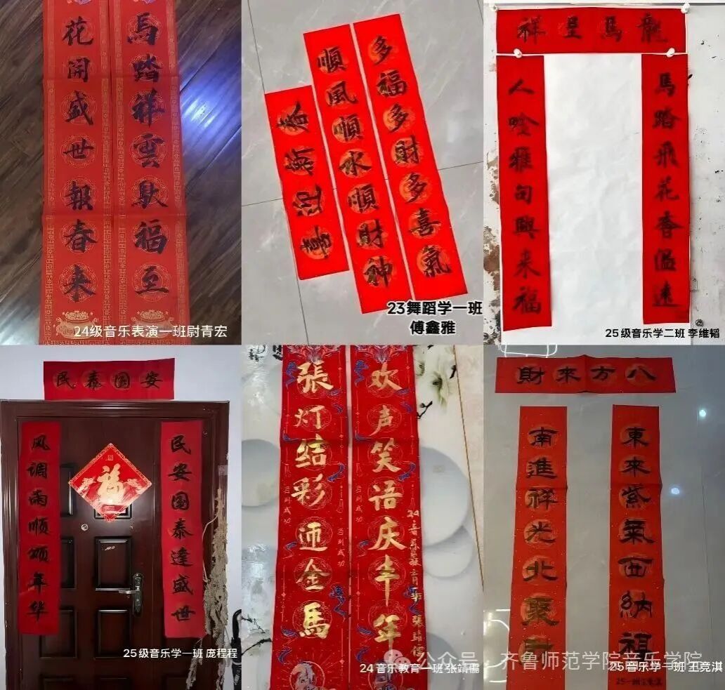 为厚植中华优秀传统文化根基,营造热烈的马年新春氛围,2026年春节期间,音乐学院举办“挥毫书祥瑞,泼墨贺新年”居家春联撰写活动,同学们居家执笔挥毫,在墨香氤氲中传递新春祝福。